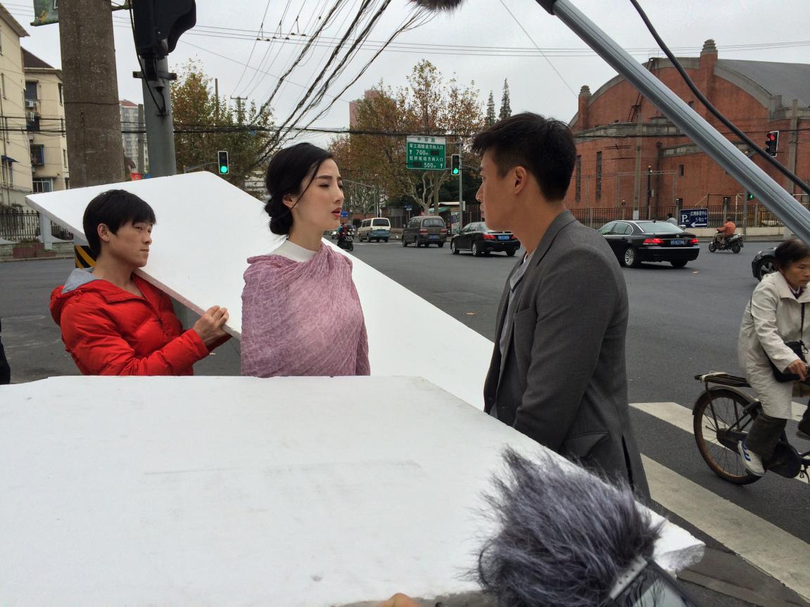 在這種公共場合取景,不光要應付執法的警察和城管,還要應付不明情況的圍觀群眾,鴨梨傻大啊!再加上我們英俊的男主和嬌人的女主,那些經過這里車輛,司機也頻頻伸出頭一探究竟,好了!演戲雖好,可要抓緊時間歐!造成交通事故那就不好了!